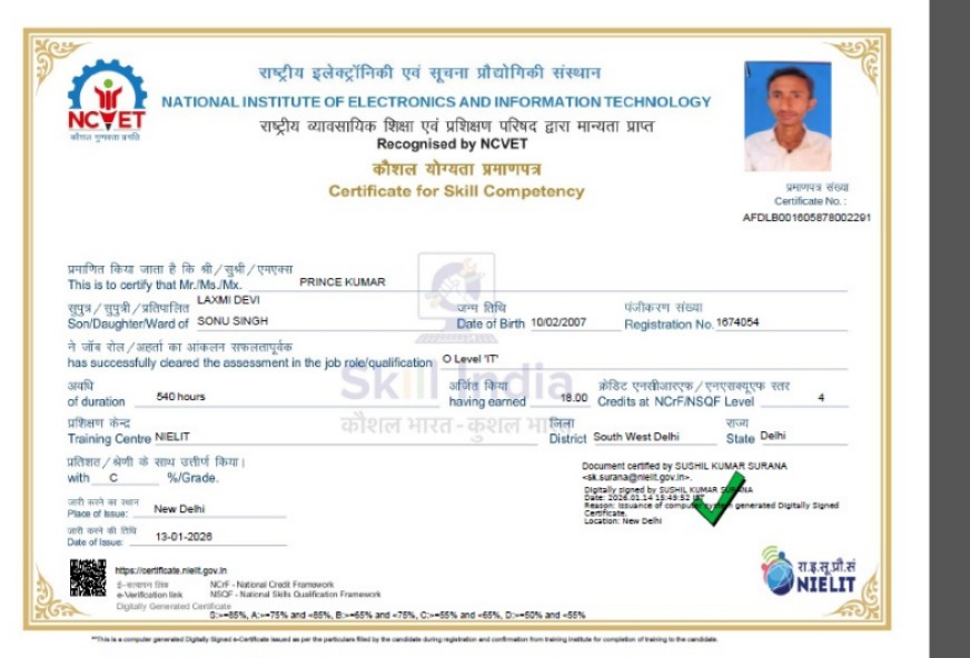| 19 | PRINCE KUMAR | MR. SONU SINGH | 1674054 | O LEVEL | DIPLOMA | Regular | Click Here to Verification | ||