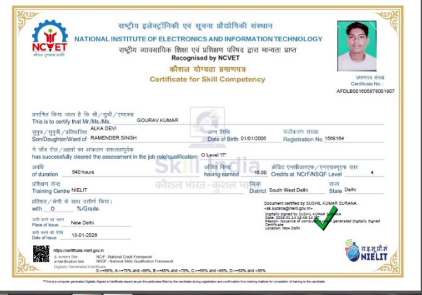 | 17 | GAURAV KUMAR | MR. RAMENDER SINGH | 1568164 | O LEVEL | Diploma | Regular | Click Here to Verification | ||